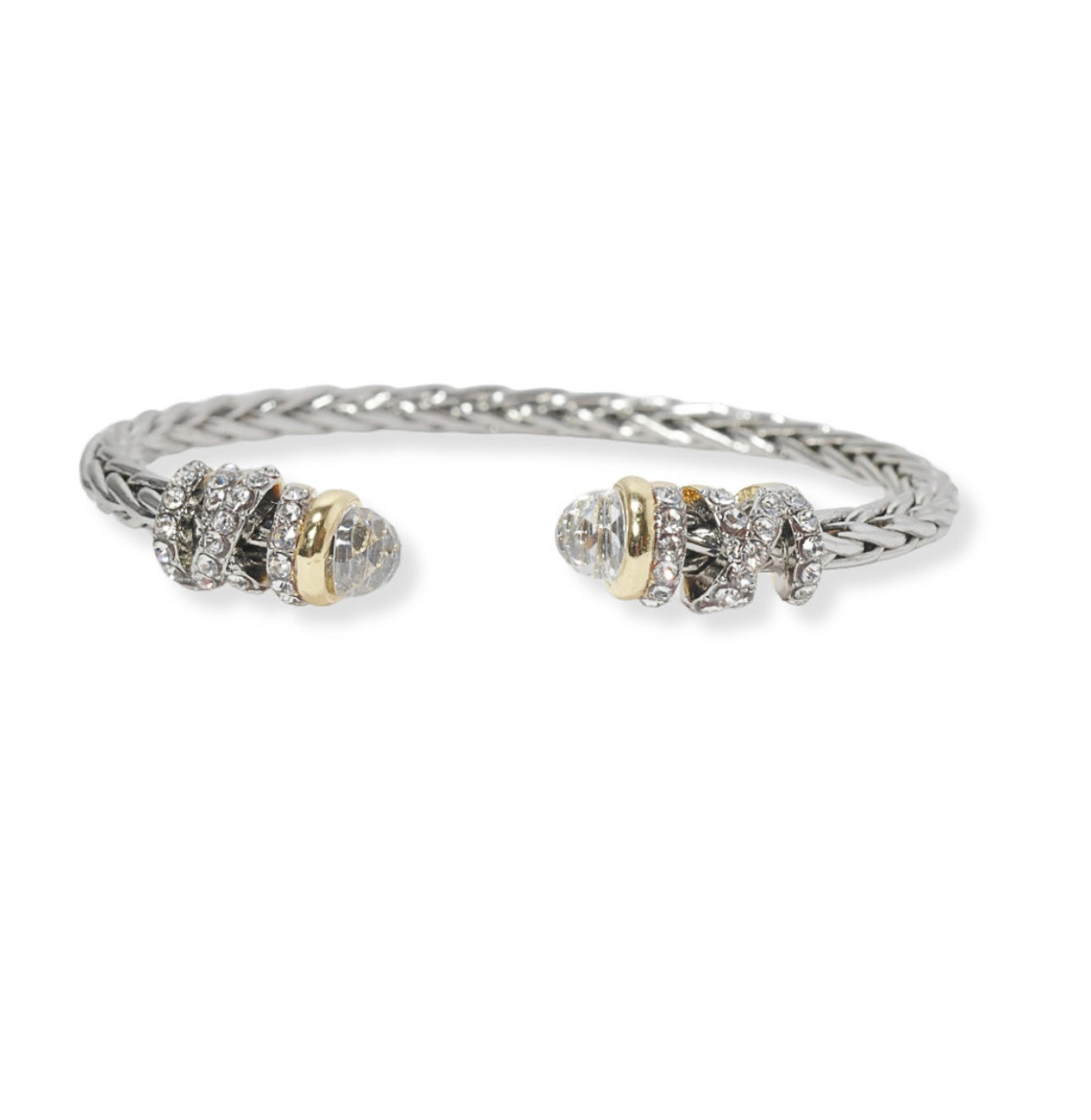 Two tone Clear designer inspired cubic zirconia cable cuff bracelet NO RETURN ON JEWELRY